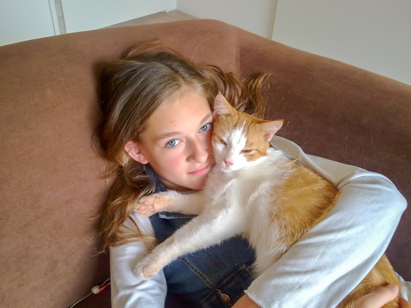 Ons ben ik zelf, mijn dochter Alycia (hier samen op de foto van een paar jaartjes geleden), Boxy de kater, Chino de hond, Jeffrey de schoonzoon, en,.....